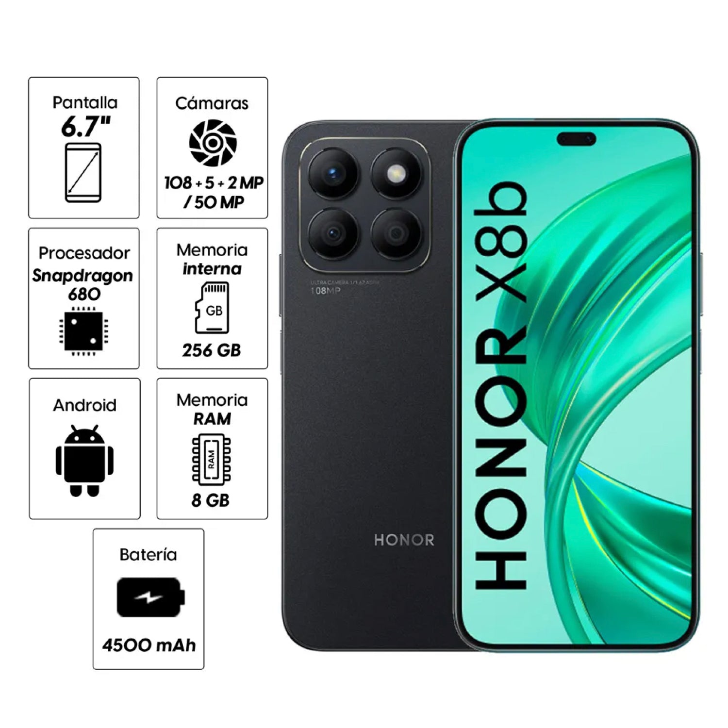- El Honor X8b, con 256GB de almacenamiento y 8GB de RAM, ofrece un rendimiento excepcional. En un elegante color negro.