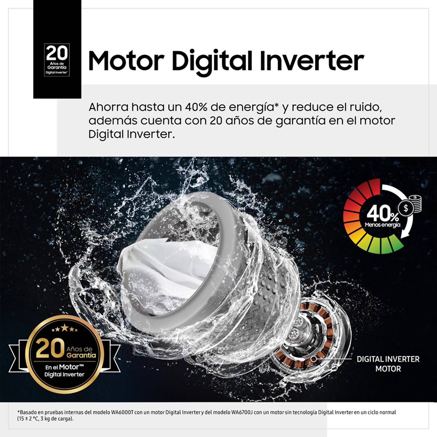 Ahorro de energía: Gracias al Motor Eco Inverter, la lavadora es extremadamente eficiente en el consumo de energía, lo que no solo reduce el impacto ambiental, sino que también ayuda a ahorrar en las facturas de electricidad.