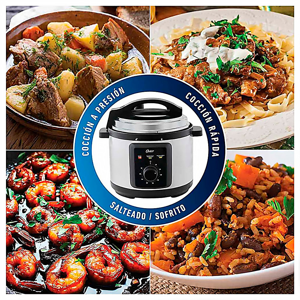 La Olla Multifuncional Oster CKSTPCEC57M053 es la herramienta ideal para aquellos que buscan combinar practicidad y eficiencia en la cocina. Con una capacidad generosa de 5.7 litros, es perfecta para preparar comidas para toda la familia o impresionar a tus invitados con deliciosos platillos.